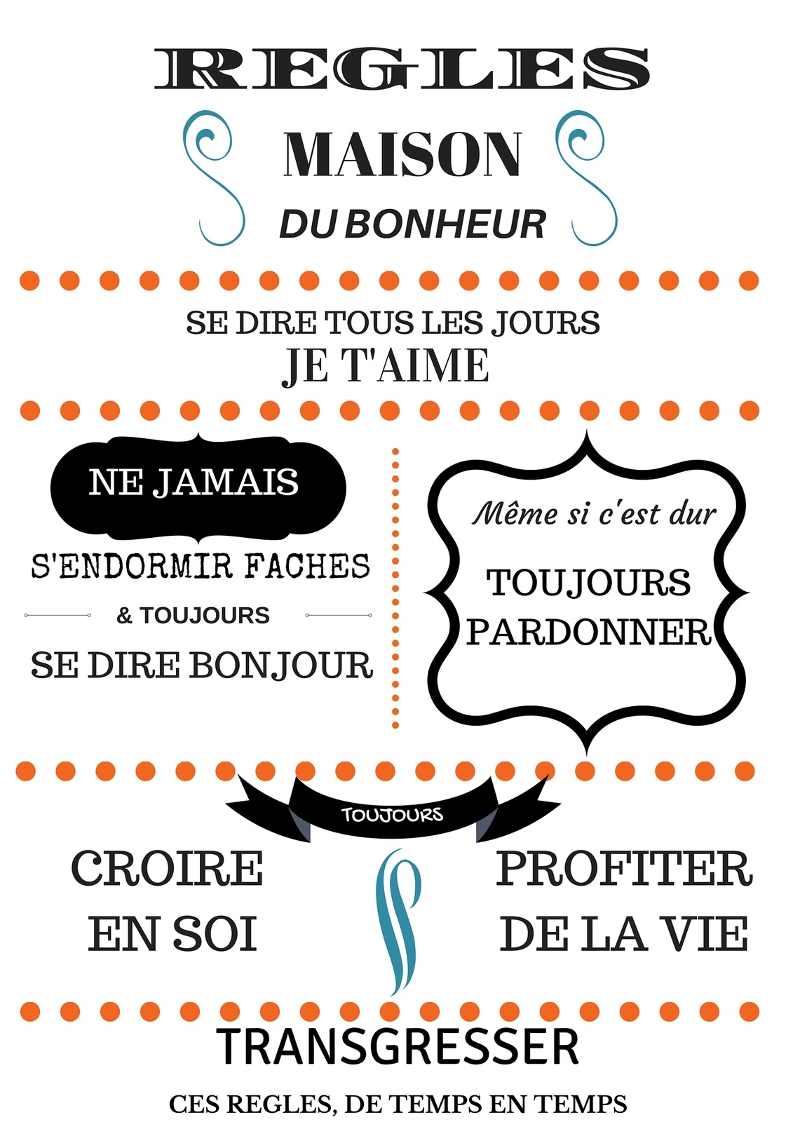 Qu’on les appelle règles de la maison, coutumes, habitudes, mœurs, commandements….
